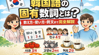 韓国語には「数字の数え方」が2種類あるのをご存じですか?・漢数詞(일, 이, 삼…)・固有数詞(하나, 둘, 셋…)特に固有数詞は日常会話で超重要ですが、「いつ使うの?」「どう変化するの?」と悩む人がとても多いです。この記事では、✔ 固有数...
