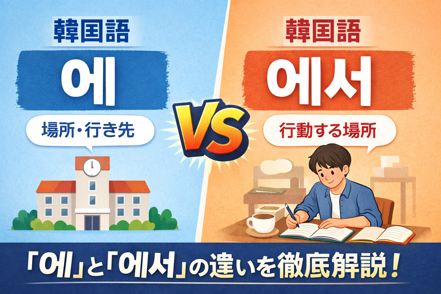 🇰🇷 韓国語の場所助詞「에 / 에서」完全ガイド|違い・使い分け・例文をわかりやすく解説