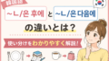 日常生活で使えるようになりたいですね!この記事は『日常生活でよく使う韓国語動詞100選』の中の1語です。よく使う動詞をまとめて知りたい方は 👉 こちら韓国語で『渡る』は?건너다コンノダ越える・横切るという意味でも使われますね!건너다 の使い...